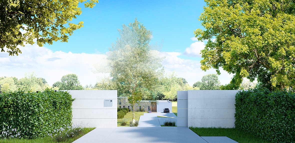 Construction d'une maison contemporaine sur un terrain en pente, construction d'une piscine, de dépendances et aménagement du jardin de 5000m².