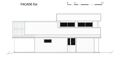 L'étage est, en partie basse, protégé par les toitures du rez-de chaussé, par les combles faisant espaces tampons. De cette manière la compacité de la maison est optimale, et réduit largement les déperditions thermiques.