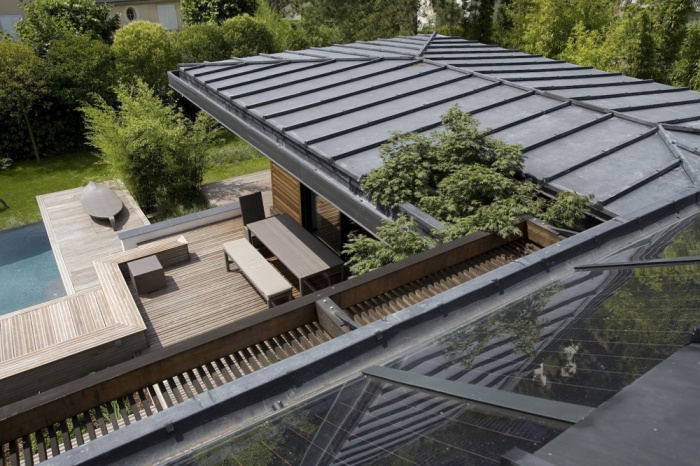 Le projet consiste à agrandir et réaménager cette maison en l’ouvrant de plein pied progressivement vers le jardin. Il propose une sorte de dématérialisation progressive du minéral vers le végétal par un jeu multiple de terrasses et patios.