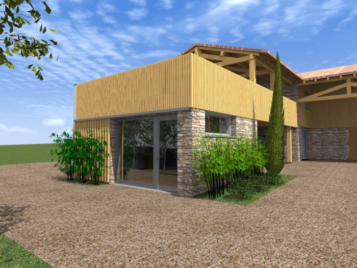 Il s'agit d'un projet de rénovation et démolition d'une vieille maison avec la réalisation d'un magasin pour la vente de foie-gras et d'une terrasse au premier étage qui relie l'habitation au magasin. Le projet est situé en bord de chemin sur la commune de Mercenac dans l'Ariège. Le propriétaire souhaitait faire ressortir la pierre cachée sous l'enduit pour le rez-de-chaussée et avoir un bardage bois au premier étage, idée qui a été retenue pour le magasin.