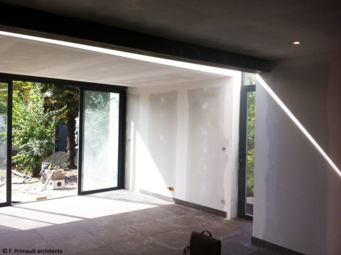 vue sur l'espace à vivre et la faille lumineuse depuis le séjour