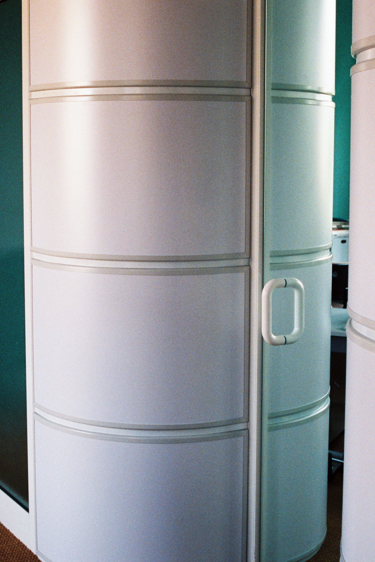 Il s'agit du réaménagement intérieur de l'espace de la Direction de l'usine Polyrey de Couze en Dordogne. Le programme comporte essentiellement l'aménagement du secrétariat de Direction avec son espace d'attente et une zone accueil-courrier. Les cloisons des anciens bureaux ont été démolies pour laisser la place à un nouvel aménagement avec des parois plus transparentes, permettant une meilleure diffusion de la lumière. Certaines cloisons sont revêtues de panneaux de stratifié décoratif à motifs. Des éléments de mobilier sont intégrés dans le cloisonnement du secrétariat : des placards sont logés dans des fûts semi cylindriques toute hauteur réalisés en panneaux de stratifié cintrés. À ce matériau contemporain sont associés des matériaux d'autre nature comme le bois de hêtre de la banque d'accueil, le coco du sol, ou le velours bleu des coussins de la salle d'attente. Photos : Benoît Legendre