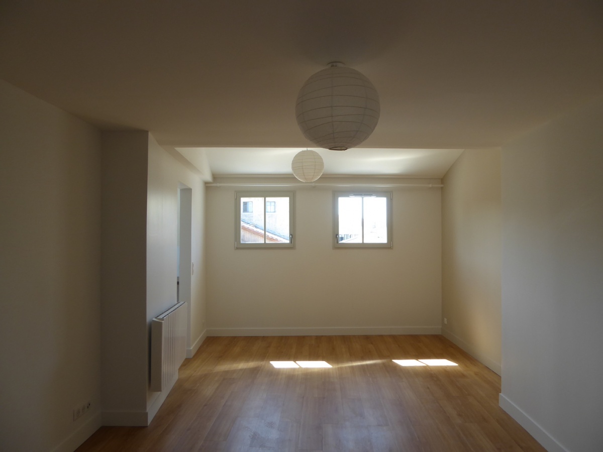 le séjour du T2 sous les toits une fois terminé, les baies remaniées